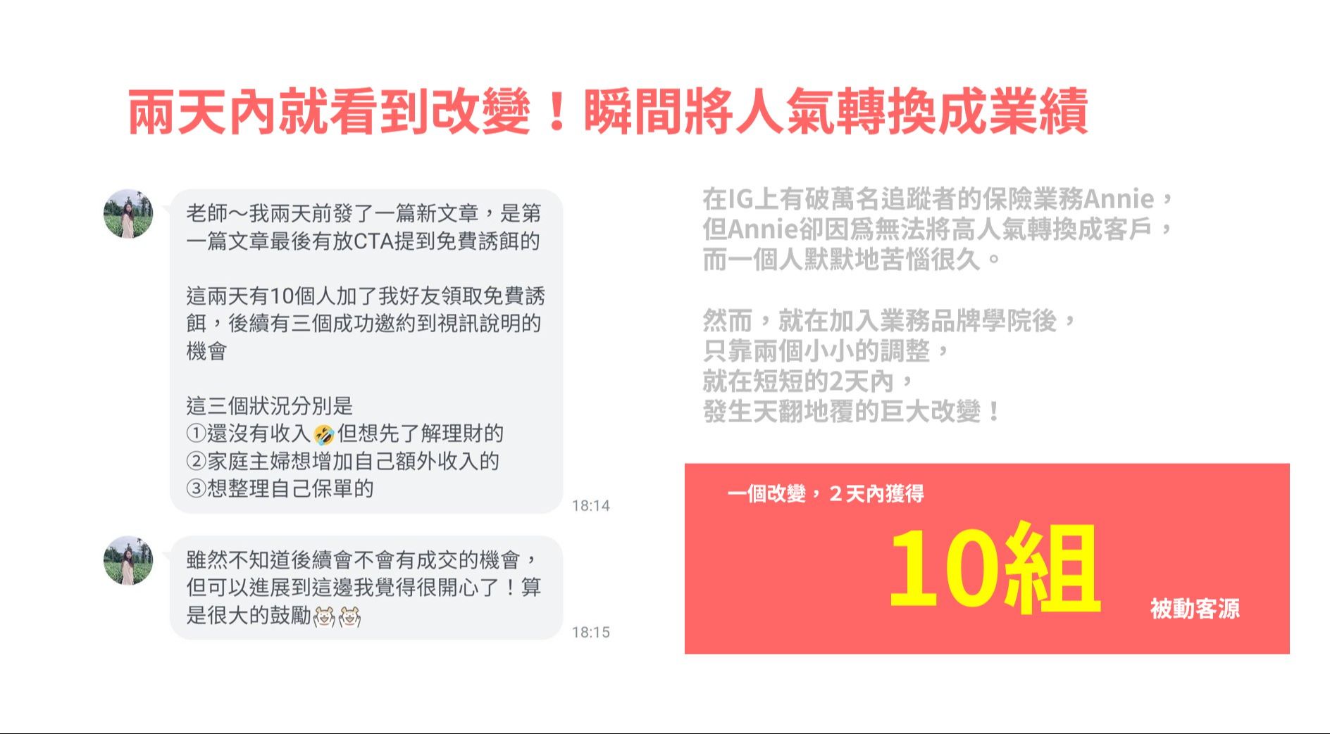並不是所有業務員都可以100%、經營起一個成功的個人品牌,我也不提供任何成果與收入保證。